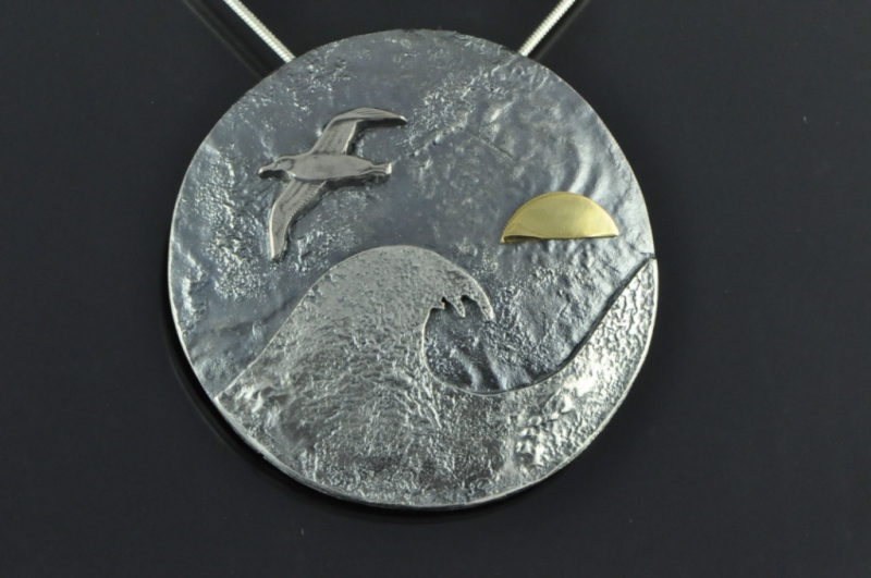 Sterling silver, 18ct and 22ct gold, Mokume Gane, bronze and copper.