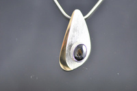 Asymmetric reticulated Sterling silver and grey Star Sapphire pendant |