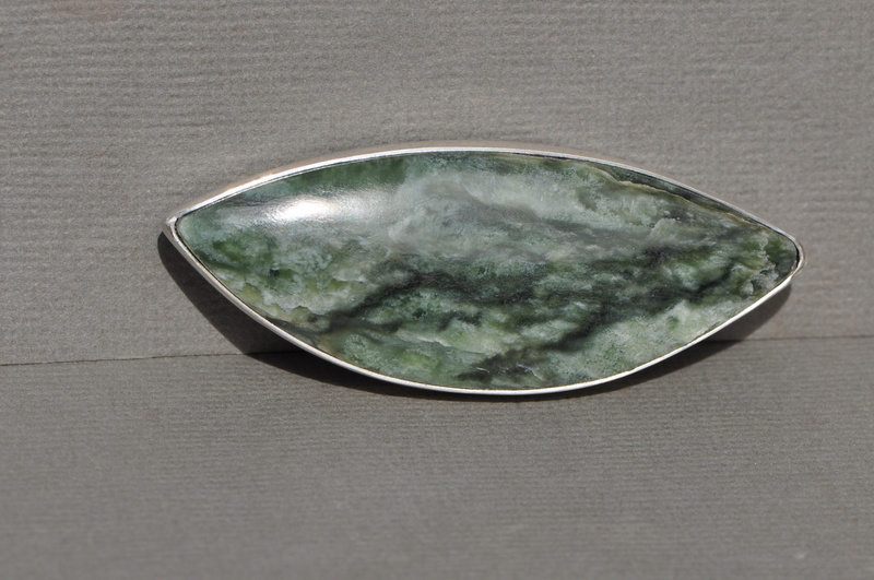 Pounamu and silver brooch