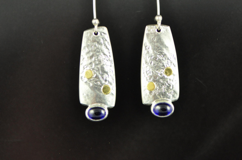 Asymmetric Silver and Cabochon Blue Sapphire Earrings |