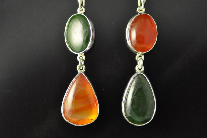 Pounamu and Carnelian Vice Versa Silver Earrings |
