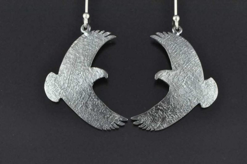 Kaka in flight textured and darkened Sterling silver earrings